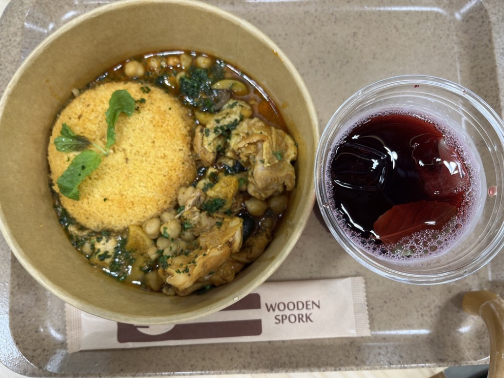 スパイスで煮込まれた鶏肉と、クスクス。あまり食べる機会がないクスクスだけど、食べやすくて美味しかった。