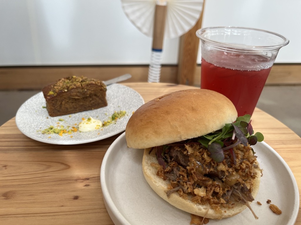 バーレーン風ローストビーフのサンド(2,700円)と、デーツケーキとマンゴーアイスとルメーソーダ(2,900円)。