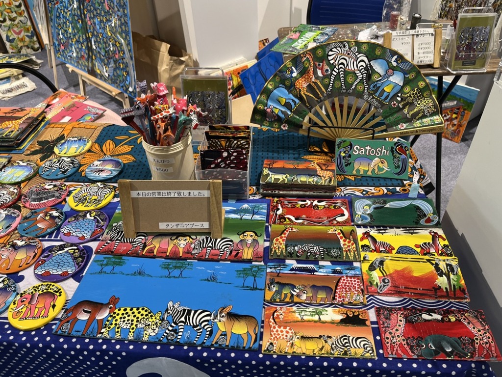 マサイ族とか、キリマンジャロが有名なタンザニア。サファリツアーも人気みたいで、カラフルな動物の絵のグッズが並んでたよ。この場で描いてるみたいだけど、私が行ったときは不在だったよ。自分の名前とか入れてもらえるみたい。