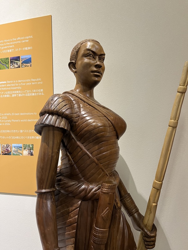 そんなベナンの展示は気になるものが多くて。まず、入口にある女性兵士の像。かっこいい。