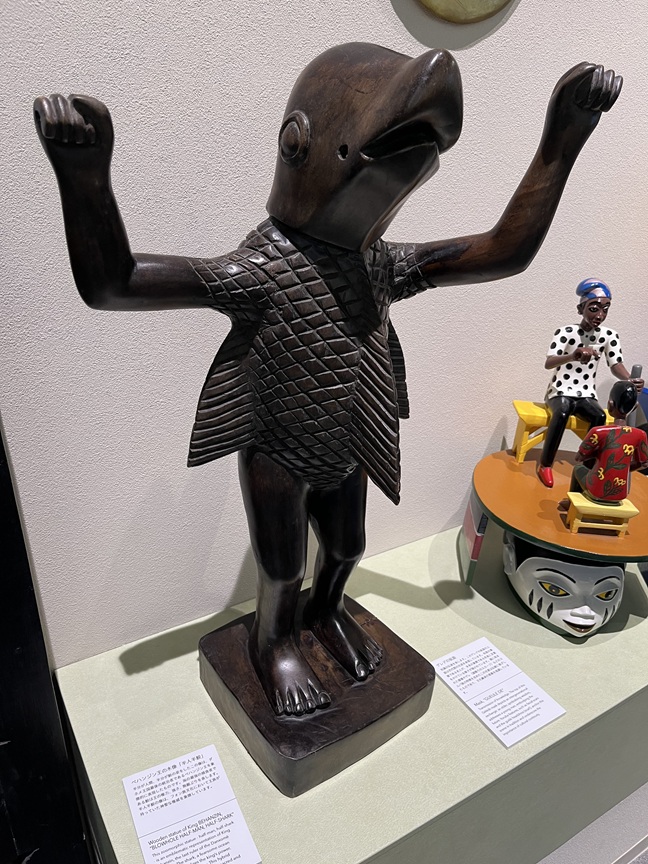 半分が人で半分が鮫!半人半鮫!人魚だと、上が人で下が魚だけど、これは、人と鮫が入り混じった感じで独特。ベナンの前のダホメ王国のべハンジン王の神聖な権威を表してるらしい。なんかすごいってのは分かるわ。