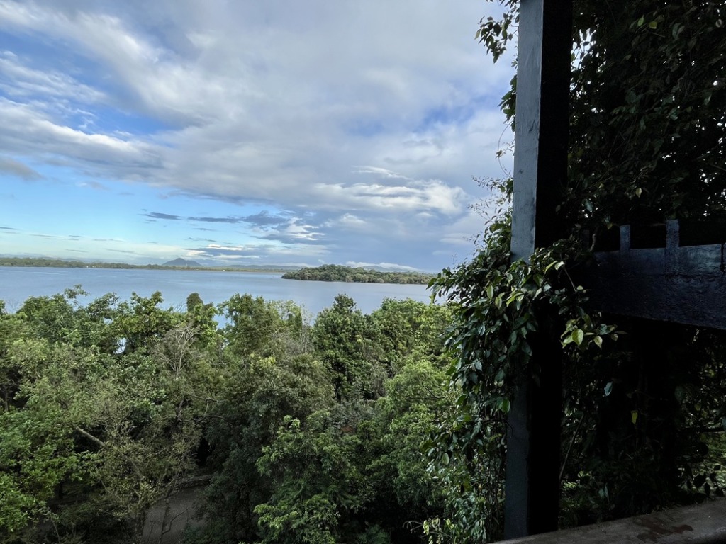 Heritance Kandalama(ヘリタンス・カンダラマ)は、カンダマラ貯水池のほとりにあるホテル。奥に見えているのが池。