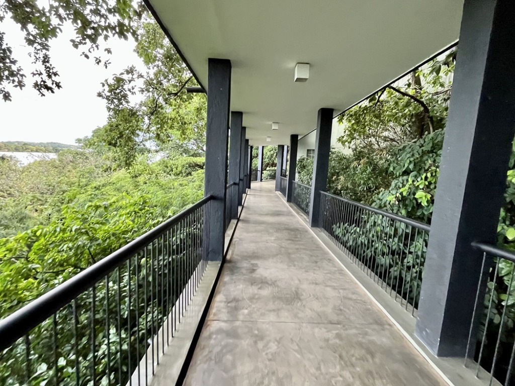 部屋の玄関前の通路も、木々が生い茂ってる。
